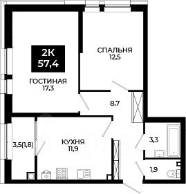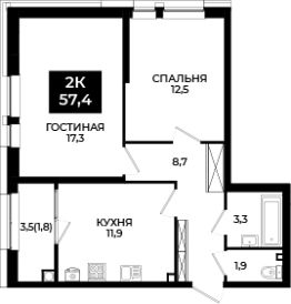 Общая площадь57,4 м²