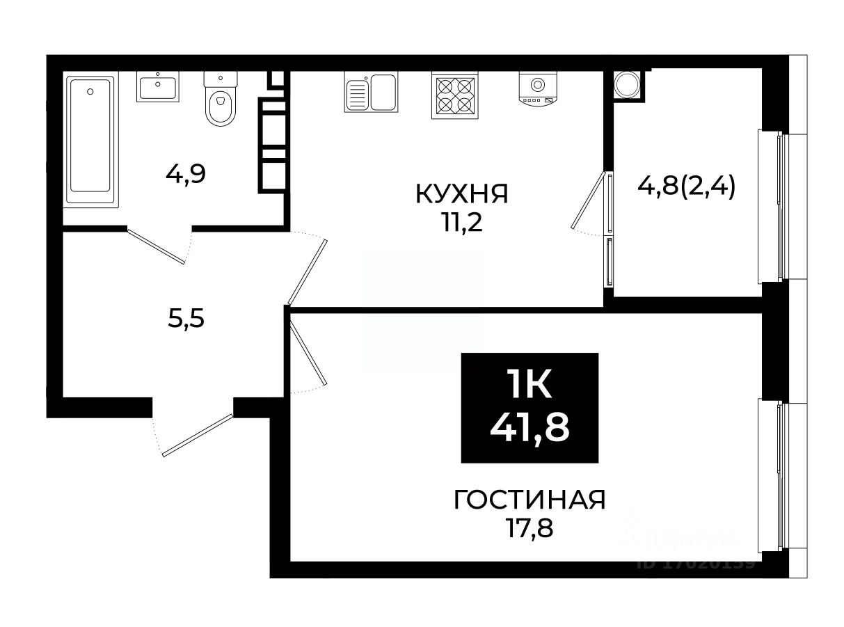 Общая площадь41,8 м²