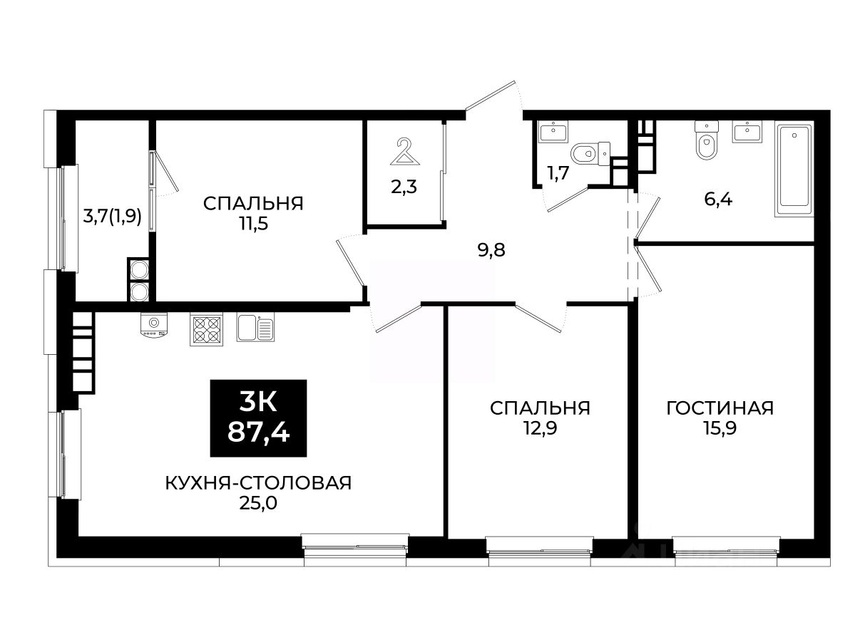 Общая площадь87,4 м²