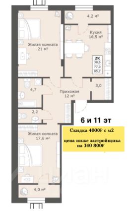 Скидка 4 000 ₽/м² от цены отдела продаж
