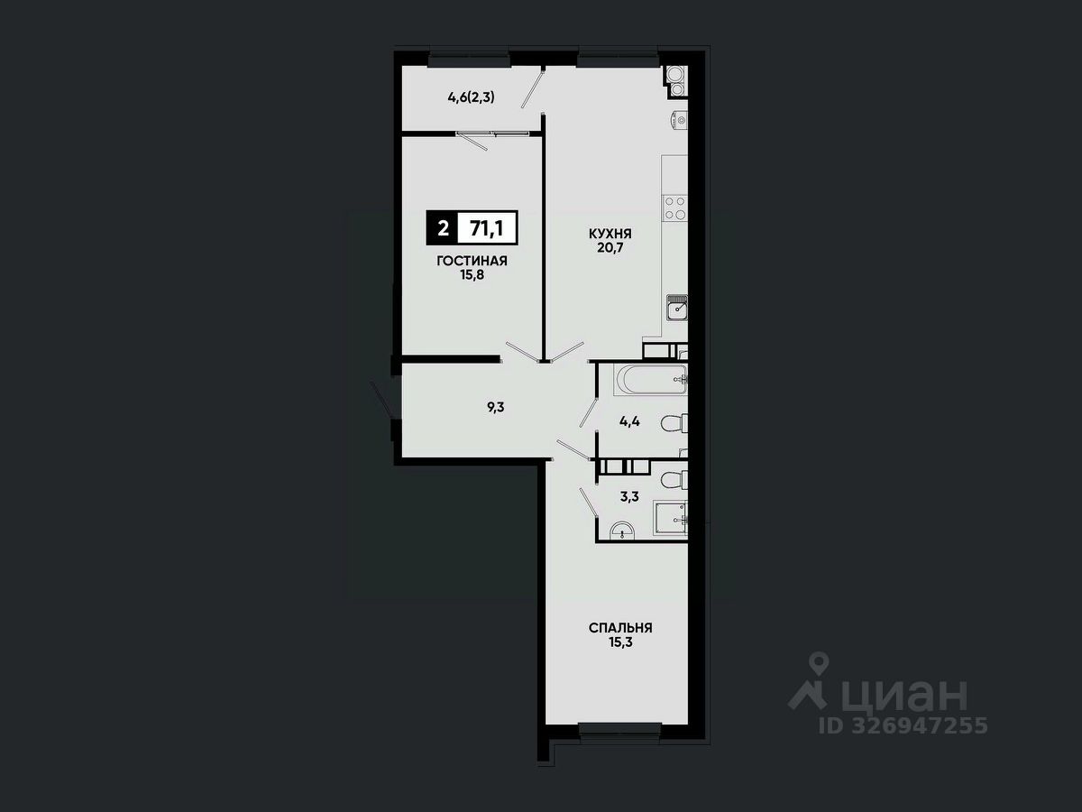 Общая площадь71,1 м²