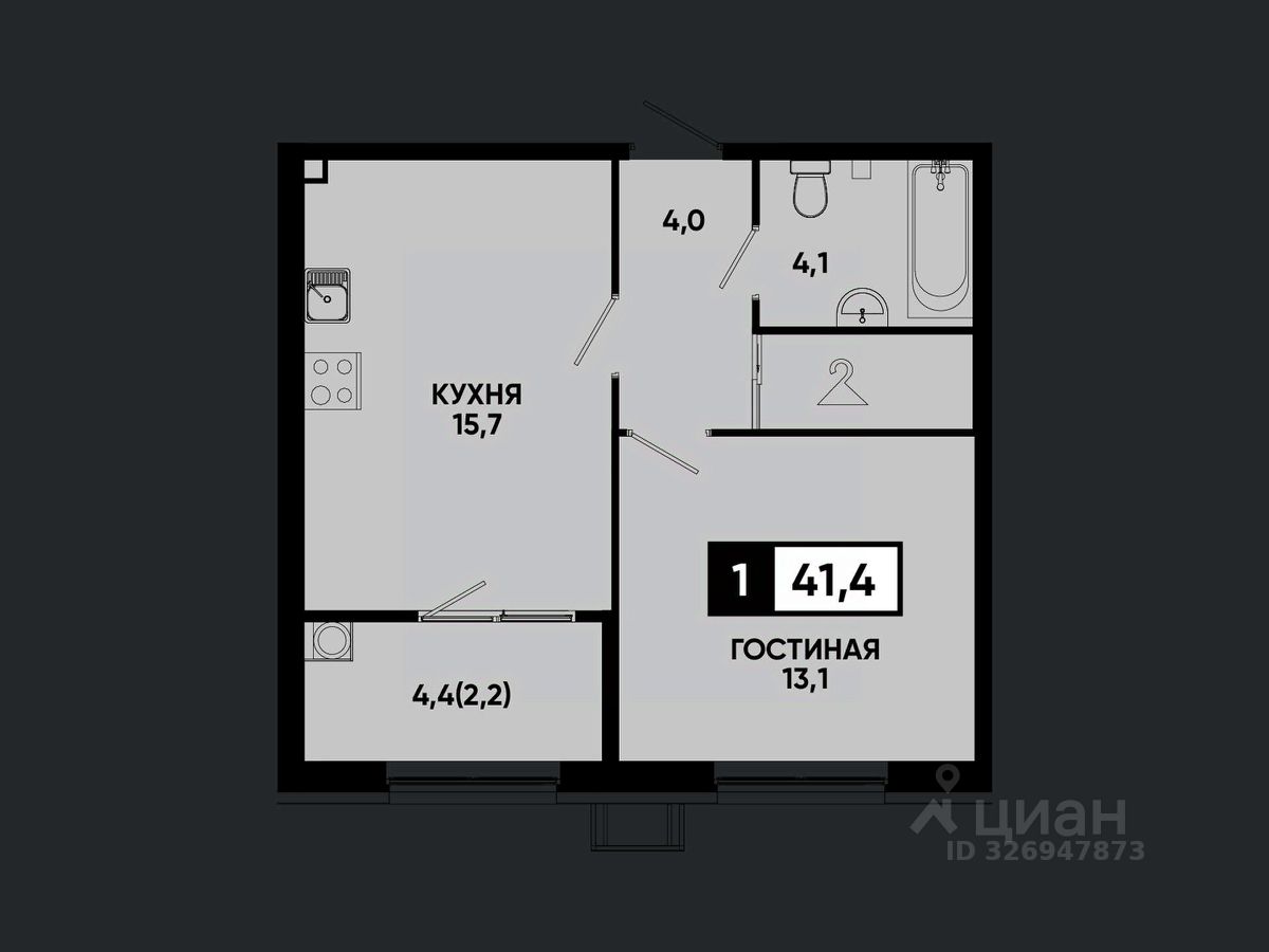 Общая площадь41,4 м²