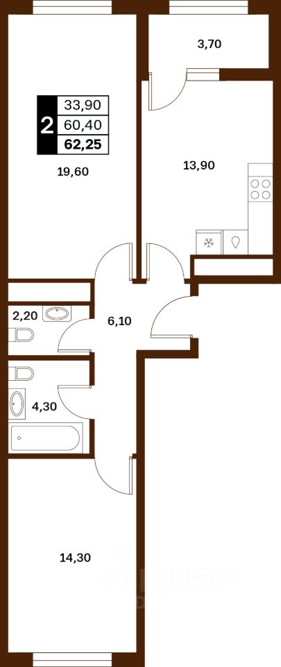 Квартиры от 27,6 до 382,62 м²