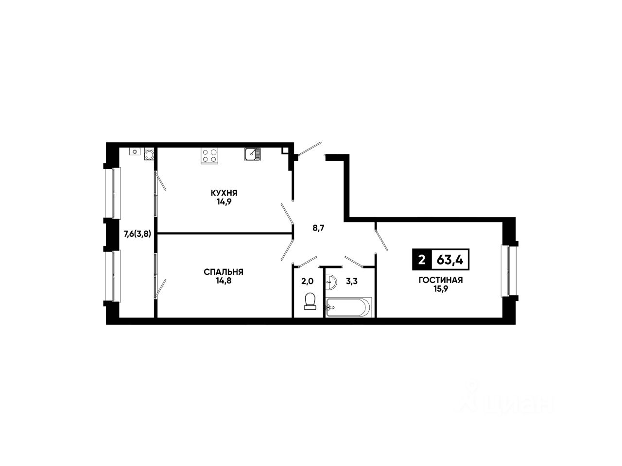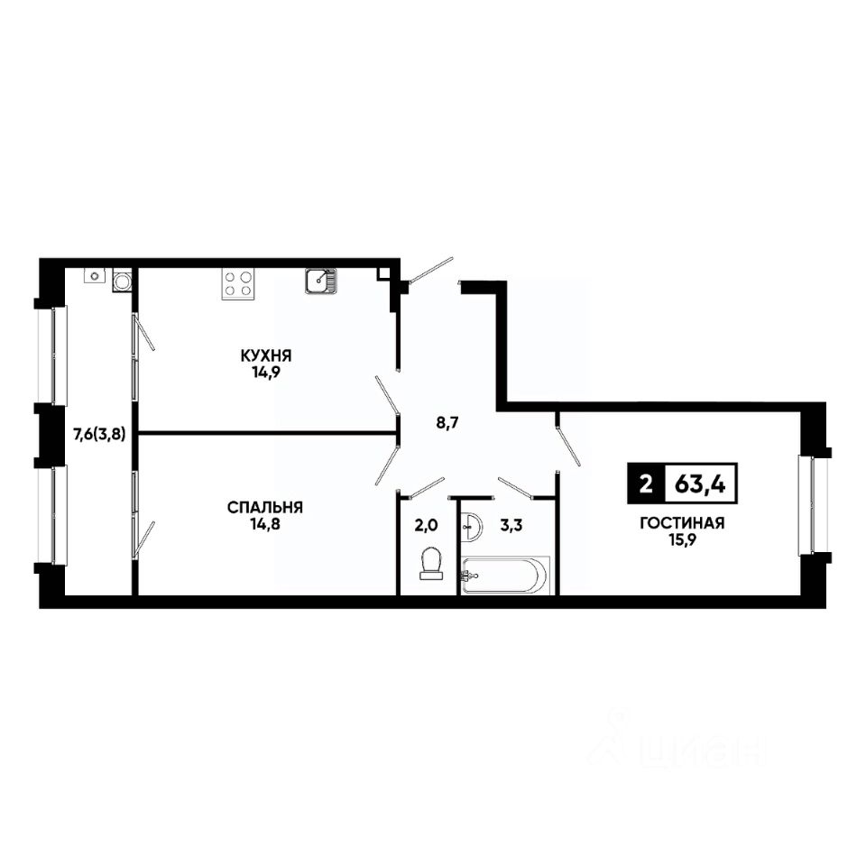 Общая площадь63,4 м²