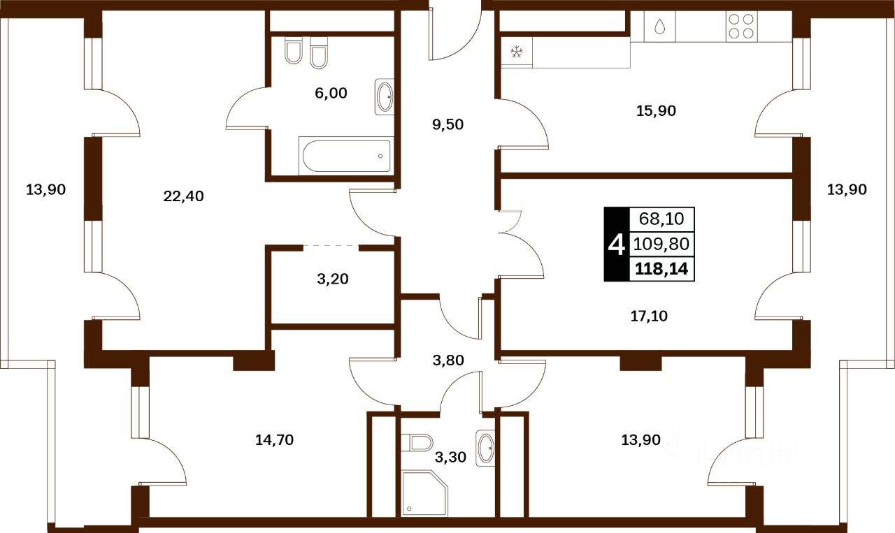 Общая площадь118,14 м²