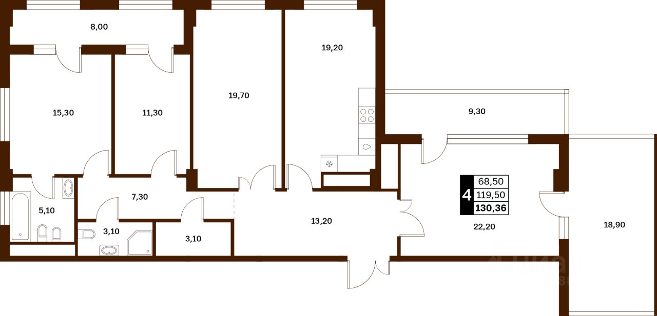 130,36 м²