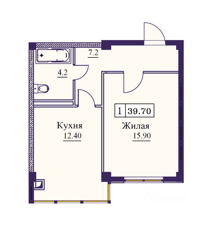 Продаётся 1-комнатная квартира в строящемся доме (Дом 1 этап 1), срок сдачи: I-кв. 2027, общей площадью 39.7 кв.м., на 9 этаже. Расположение, транспортная доступность