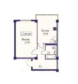 Продаётся 1-комнатная квартира в строящемся доме (Дом 1 этап 2), срок сдачи: III-кв. 2027, общей площадью 46.9 кв.м., на 1 этаже. Расположение, транспортная доступность