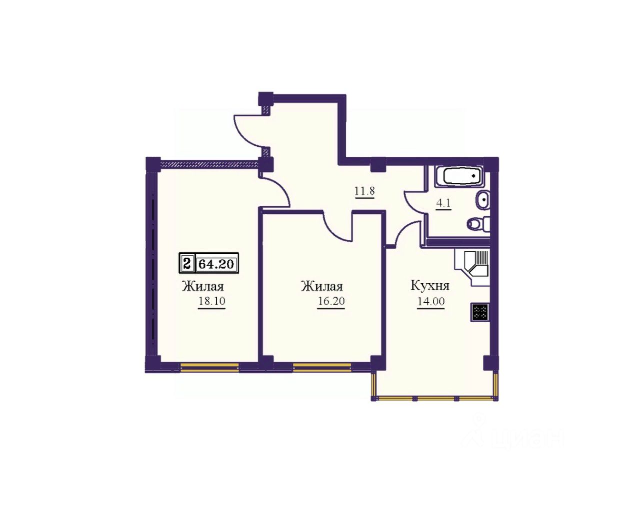 Продаётся 2-комнатная квартира в строящемся доме (Дом 1 этап 2), срок сдачи: III-кв. 2027, общей площадью 64.2 кв.м., на 1 этаже. Расположение, транспортная доступность