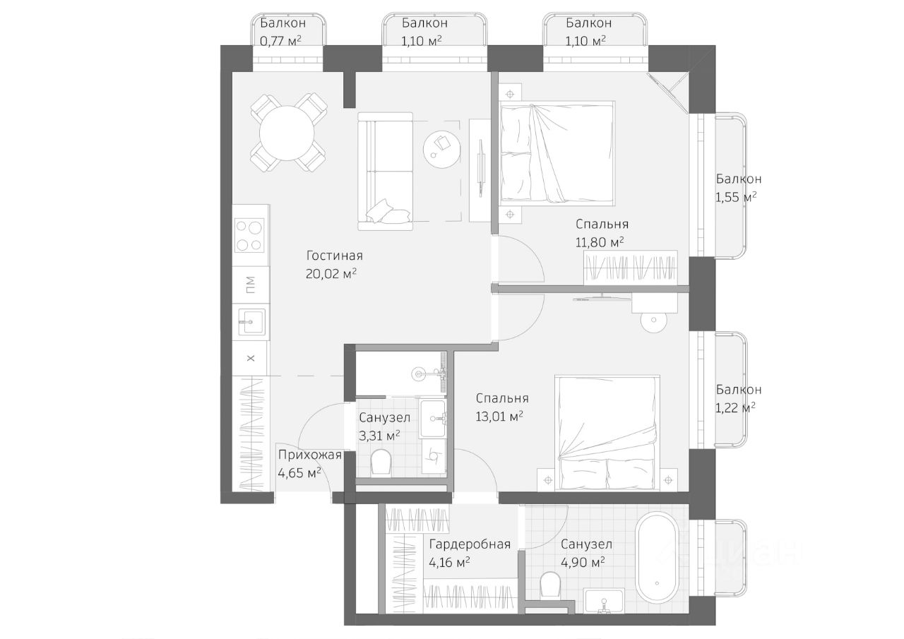 Резиденция предлагает разнообразные форматы номеров — от функциональных студий до просторных пентхаусов с собственными террасами и панорамными видами на город и горы Кавказа. Все номера передаются с полной отделкой, мебелью и комплектацией, полностью готовые к проживанию или размещению гостей.