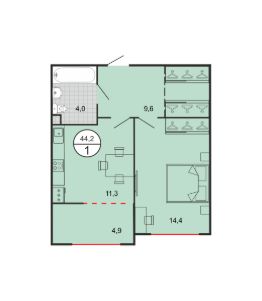 14,4 м²