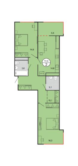 Продаётся 2-комнатная квартира в строящемся доме (Дом 1), срок сдачи: II-кв. 2027, общей площадью 72.8 кв.м., на 16 этаже. Новый жилой дом от застройщика "ГК Стройград" расположен по адресу: г. Георгиевск, улица Филатова.