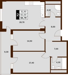 Общая площадь84,79 м²