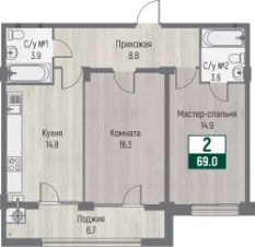 Продаётся 2-комнатная квартира в строящемся доме (поз. 1), срок сдачи: III-кв. 2027, общей площадью 69 кв.м., на 14 этаже. Новый жилой комплекс "Дубровский" от застройщика "СХ Эвилин" расположен по адресу: г. Ставрополь, Шпаковская улица.