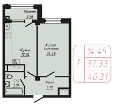 Продаётся 1-комнатная квартира в строящемся доме (Секции 6-10), срок сдачи: II-кв. 2028, общей площадью 40.31 кв.м., на 7 этаже.