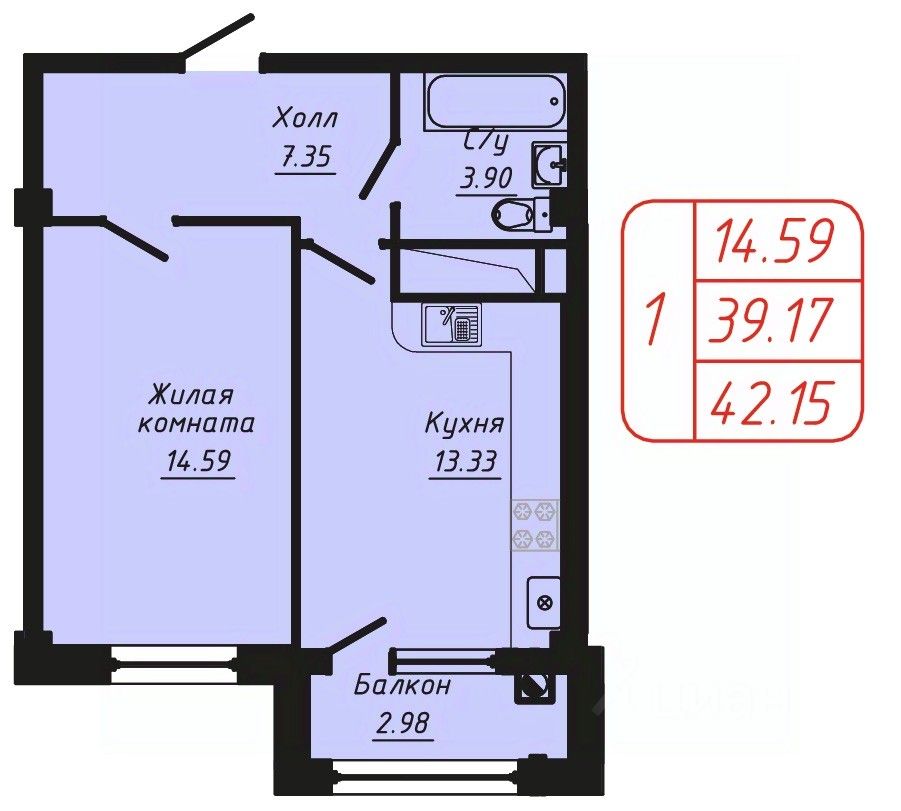 Продаётся 1-комнатная квартира в строящемся доме (Секции 6-10), срок сдачи: II-кв. 2028, общей площадью 42.15 кв.м., на 7 этаже.