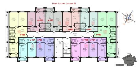 Продаётся 2-комнатная квартира в строящемся доме (Секции 6-10), срок сдачи: II-кв. 2028, общей площадью 73.14 кв.м., на 3 этаже.