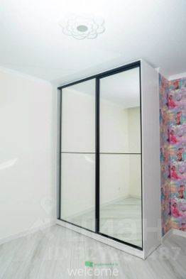 в детской комнате большой зеркальный шкаф.