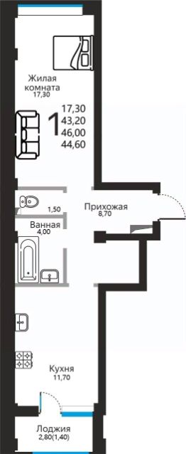 44,6 м²