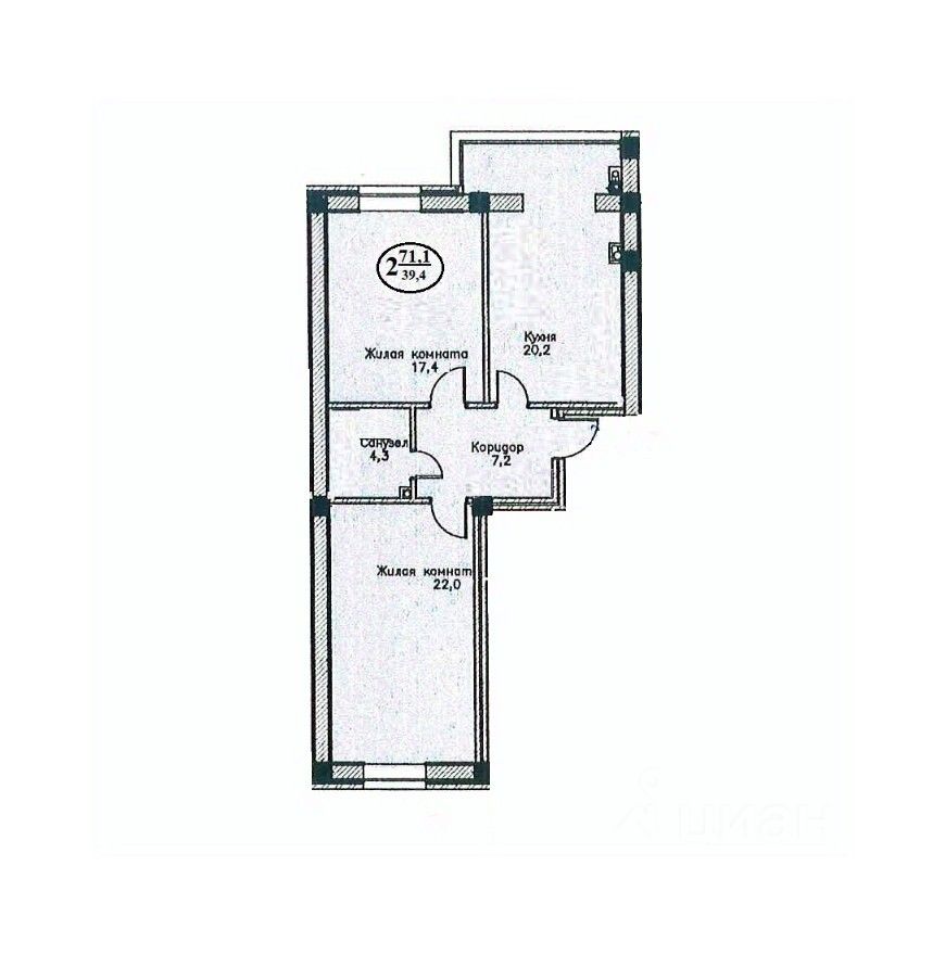 Жилая площадь39,4 м²