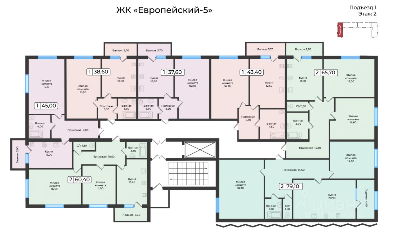 Пять этажей с лифтом, эстетичный вид из окон и комфорт и удобство с тёплым полом на балконе.