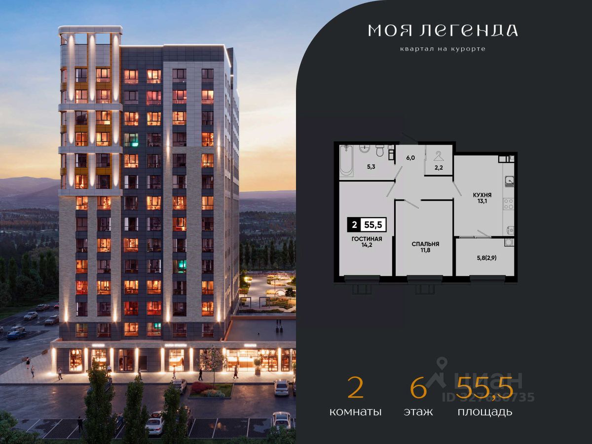 2-комнатная квартира в ЖК "Моя Легенда" — идеальный выбор для комфортной жизни с высокой выгодой от надежного застройщика ЮгСтройИнвест. ЖК "Моя Легенда" — это современный комплекс с передовыми технологиями, обеспечивающий максимальный комфорт и удобство для всех своих жильцов. Квартиры здесь отличаются отличной планировкой, высоким качеством строительства и инновациями, создающими комфортную атмосферу для жизни. О застройщике: ЮгСтройИнвест — один из ведущих девелоперов на Юге России, с более чем 20-летним опытом в строительстве. Мы реализуем проекты по 214-ФЗ, гарантируя своевременную сдачу и высокое качество на всех этапах. Тысячи семей уже наслаждаются комфортом, который мы создаем, а наш подход к благоустройству делает наши кварталы одними из лучших в регионе. Планировка квартиры: — 2-комнатная квартира с функциональной и удобной планировкой; — Просторная кухня-гостиная для семейных обедов и отдыха; — Отдельная спальня для уединения, удобные зоны хранения и большое количество естественного света. Комфорт и инфраструктура ЖК "Моя Легенда": — Закрытая территория с охраной и системой видеонаблюдения; — Умный подъезд с системой распознавания лиц и дистанционным открытием подъезда и паркинга через приложение; — Современные спортивные и детские площадки, а также зеленые зоны для прогулок; — Многоуровневый подземный паркинг и гостевые парковочные места. Специальные предложения и акции: Квартира с ремонтом от застройщика — до 1 276 500 руб. выгоды; Семейная ипотека от 6% для семей с детьми до 6 лет или с детьми-инвалидами; Рассрочка; Скидка до 3% на квартиры для участников СВО и их семей; Скидка до 7 000 руб/м² для сотрудников СБЕРБАНКА при покупке квартиры в ипотеку. Условия покупки: — Ипотека с программами господдержки (семейная, льготная); — Материнский капитал в качестве первоначального взноса; — Возможность дистанционной сделки — удобно для тех, кто не может посещать офис лично; — Официальное оформление по 214-ФЗ. Напишите нам или позвоните — подберем лучшие варианты 2-комнатных квартир в ЖК "Моя Легенда", расскажем о действующих акциях и предложим удобные условия покупки. Не упустите шанс стать владельцем квартиры в ЖК "Моя Легенда" — современное жилье с отличной инфраструктурой и выгодными условиями! * Рендеры носят иллюстративный характер и демонстрируют возможный вариант оформления квартиры, не являясь ремонтом от застройщика.