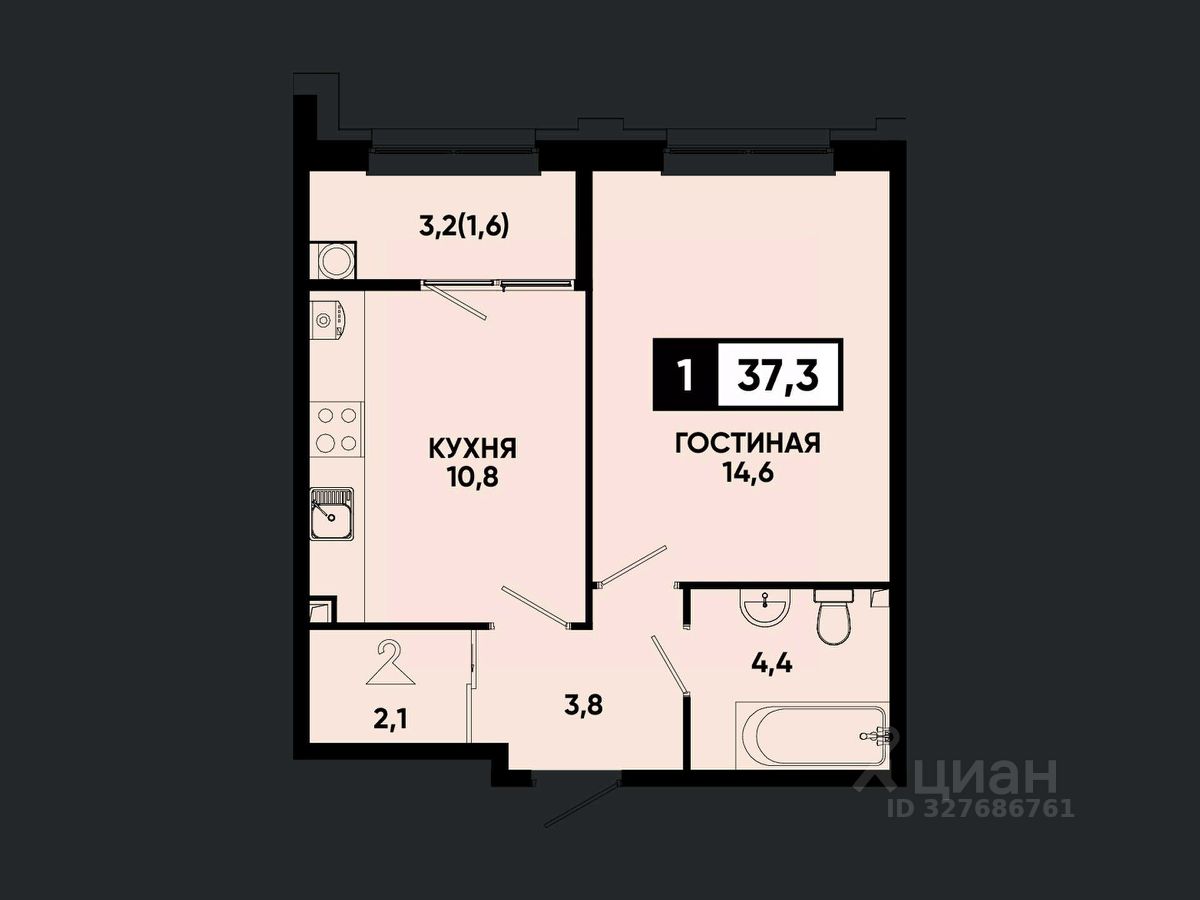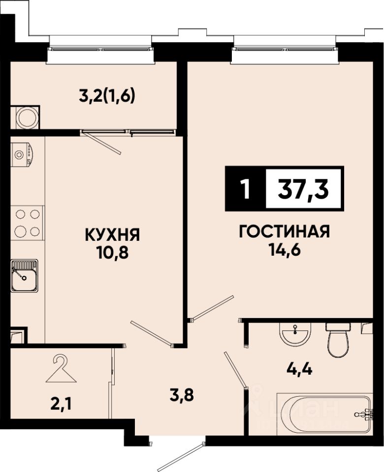 Общая площадь37,3 м²