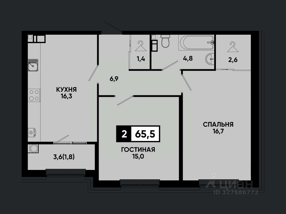 Площадь кухни16,3 м²