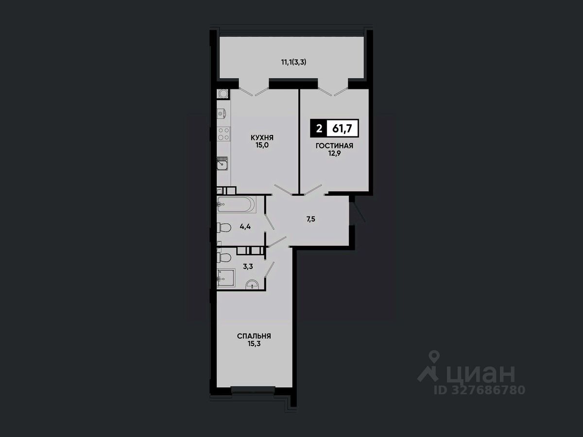 Общая площадь61,7 м²