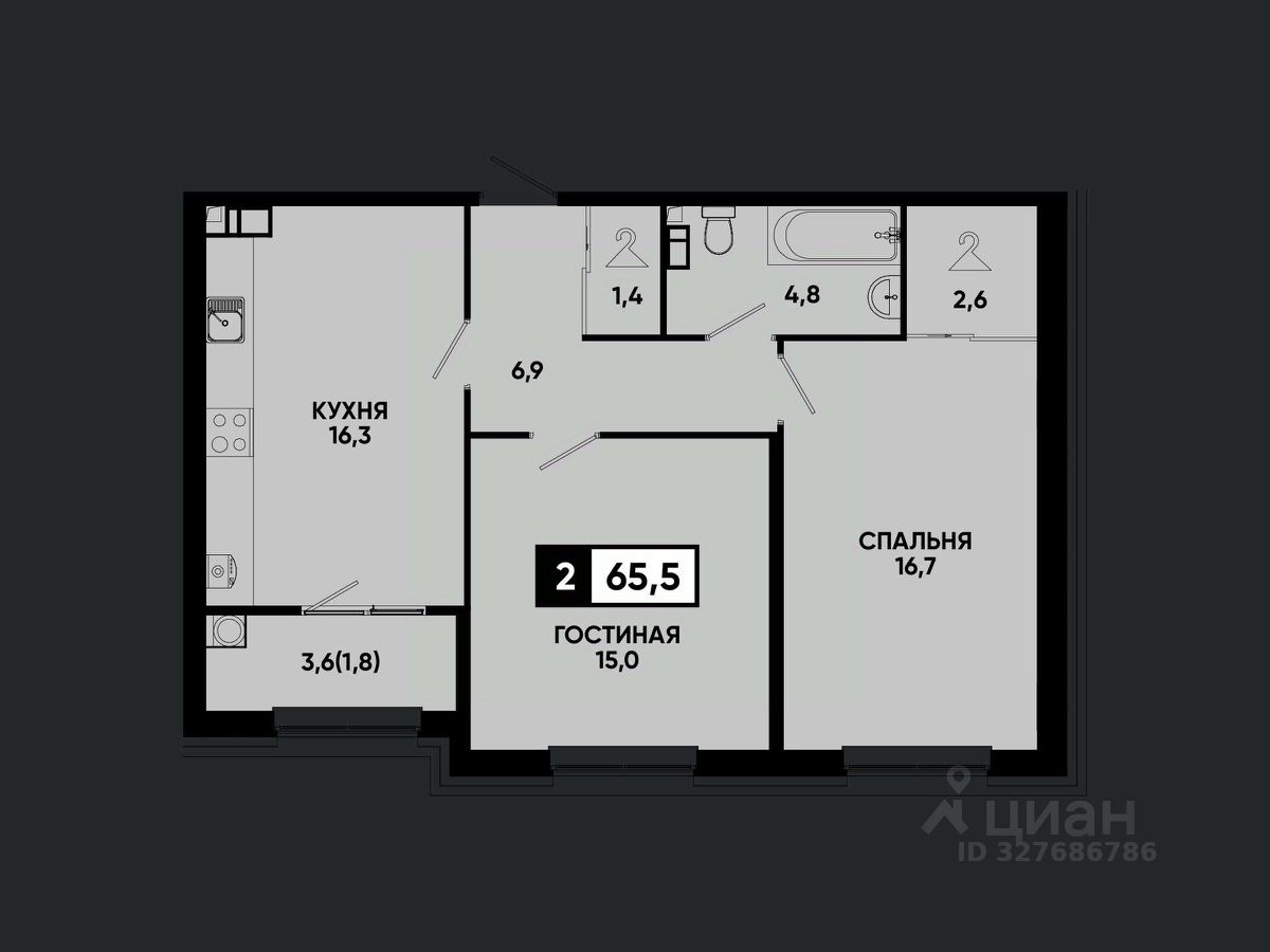 Общая площадь65,5 м²