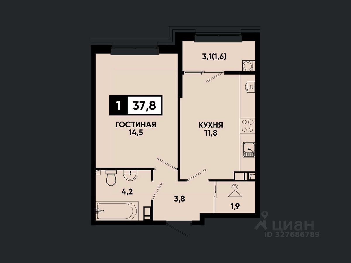 Общая площадь37,8 м²