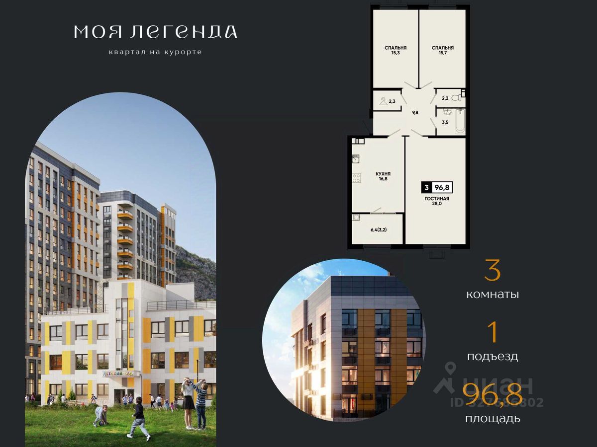 3комнатная квартира в ЖК "Моя Легенда" — курортная жизнь с видом на Эльбрус и Новое озеро от федерального застройщика ЮгСтройИнвест!