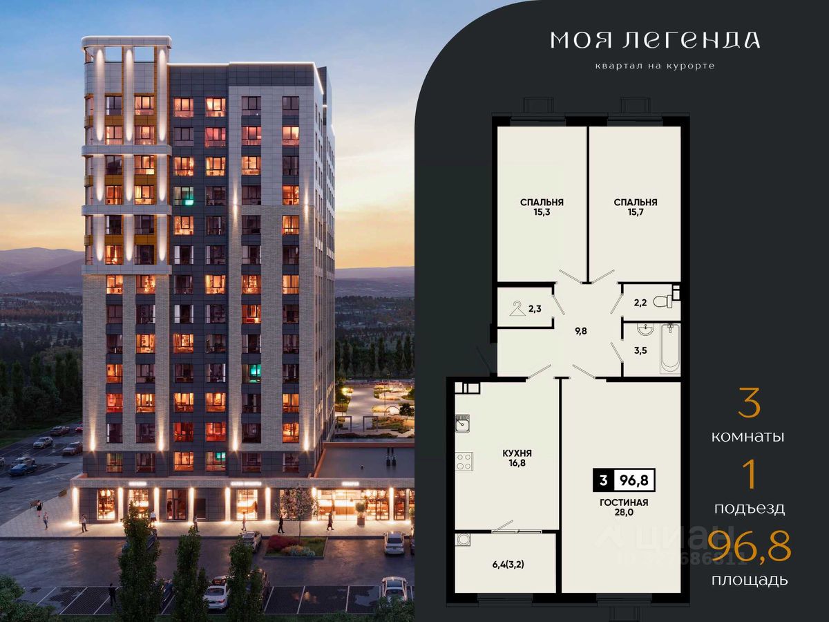 3комнатная квартира в ЖК "Моя Легенда" — курортная жизнь с готовым ремонтом от федерального застройщика ЮгСтройИнвест! Представляем просторную 3комнатную квартиру в уникальном курортном квартале "Моя Легенда" — идеальный вариант для семьи, инвестиций и комфортного проживания на курорте. О квартире — продумано для семьи: Три отдельные комнаты — спальни, гостиная и кухня, чтобы каждый член семьи имел личное пространство; Панорамные окна высотой 2,2 м наполняют квартиру естественным светом и открывают виды на Эльбрус, Боргустанский хребет и Новое озеро; Удобное расположение мокрых зон облегчает монтаж техники и экономит бюджет на ремонте; Просторная кухня-гостиная позволяет организовать обеденную зону и место для отдыха всей семьи; Квартира с готовым ремонтом под ключ, мебелью; Идеальная планировка для жизни, сдачи в аренду или инвестиций. ЖК "Моя Легенда" — курортная недвижимость премиум-класса: — 21 дом переменной этажности (914 этажей) на территории более 15 га; — Закрытые дворы на стилобате с концепцией "без машин", детские и спортивные зоны, лаунж-зоны; — Подземный и наземный паркинг, парковка по цене квартиры и рассрочка 0%; — Холлы с дизайнерской отделкой, стеклянные двери, керамогранит премиум-класса и подсветка; — Коммерческие помещения на стилобате — магазины, кафе, салоны красоты; — Собственный детский сад и физкультурно-оздоровительный комплекс на территории. О застройщике — ЮгСтройИнвест: Мы создаём не просто дома, а полноценные городские кластеры с инфраструктурой под ключ: школы, детские сады, дороги, парки, зоны отдыха и коммерческие объекты. Надежность подтверждена: Более 20 лет работы на рынке недвижимости Юга России; Полное соблюдение ФЗ-214 — прозрачность каждой сделки; Сотни тысяч кв. метров сдано строго в срок; Стандарты качества — от фундамента до благоустройства; Девелопер, создающий удобную среду для жизни и инвестиций. Локация и преимущества: — Новое озеро, гора Кольцо и центр города в шаговой доступности; — Парковые зоны, прогулочные маршруты, спортивные и развлекательные локации; — Вид на Эльбрус, Боргустанский хребет и Новое озеро; — Отличная транспортная доступность и удобные выезды. Акции и выгодные предложения: Квартира с ремонтом под ключ, мебелью и техникой в подарок — стоимость до 2,6 млн ₽; Ипотека от 6% — семейная, для ИТ- специалистов и госслужащих; Рассрочка от застройщика с ПВ от 30%; Скидка молодоженам на квартиры; Ипотека без первого взноса; Возможность использовать материнский капитал; Квартира с парковкой по цене квартиры — выгода до 1,4 млн ₽; Траншевая ипотека; Условия покупки: — Дистанционная сделка — удобно для тех, кто не может посетить офис лично; — Полное оформление по 214-ФЗ; — Сопровождение сделки от выбора квартиры до передачи ключей; — Инвестиционная привлекательность. Оставьте заявку прямо сейчас — менеджер подберет планировку, рассчитает ипотеку и забронирует вашу квартиру. 3комнатная квартира в ЖК "Моя Легенда" — курортная жизнь, готовый ремонт и комфортные