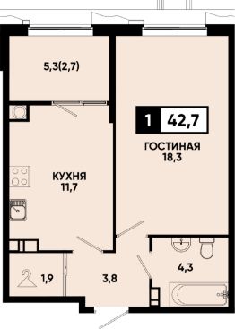 42,7 м²