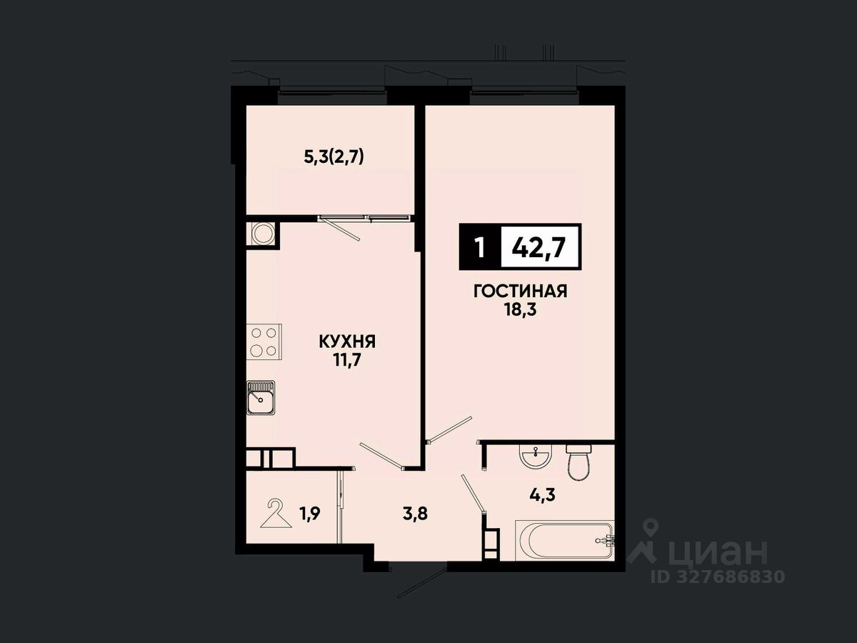 Общая площадь42,7 м²
