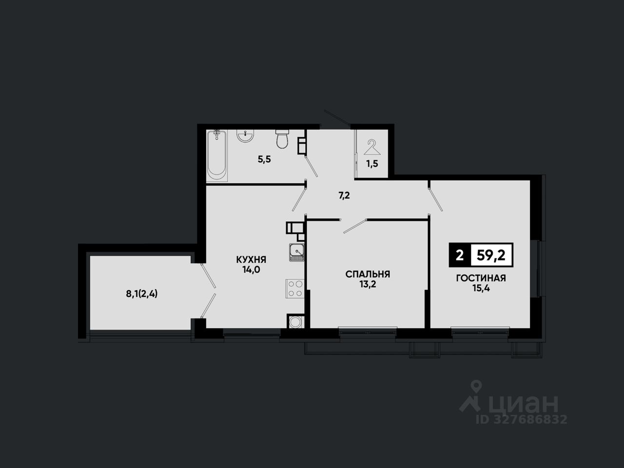 59,2 м²
