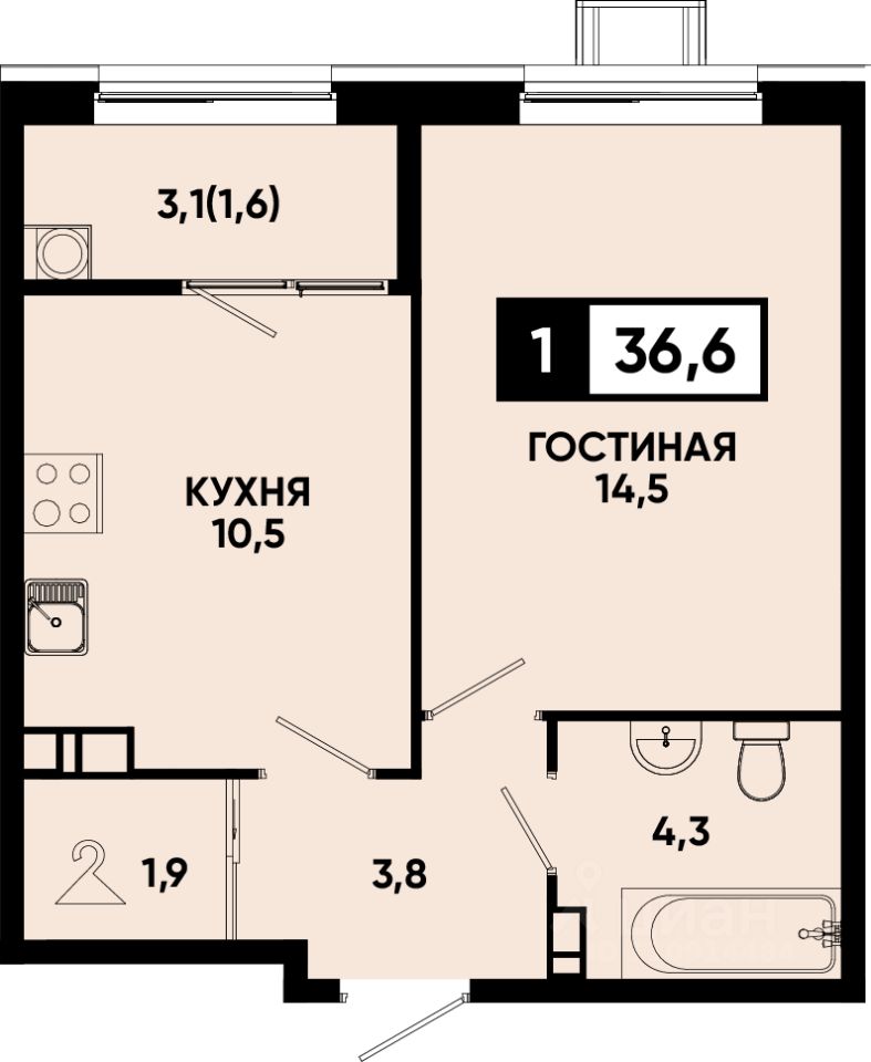 Общая площадь36,6 м²