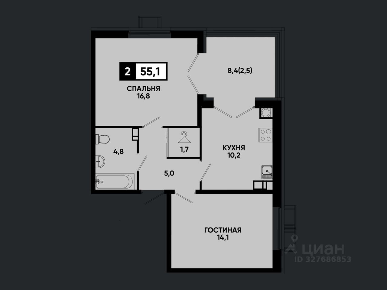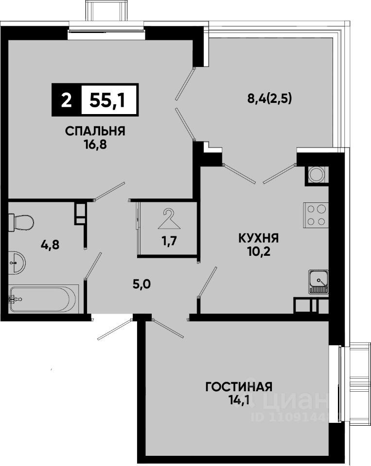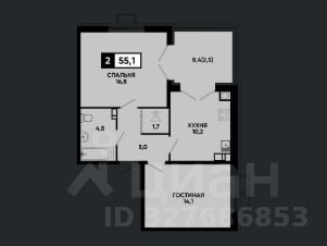 Общая площадь55,1 м²
