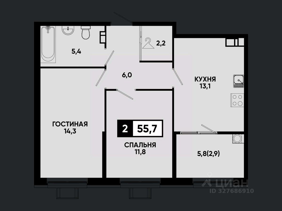 Общая площадь55,7 м²