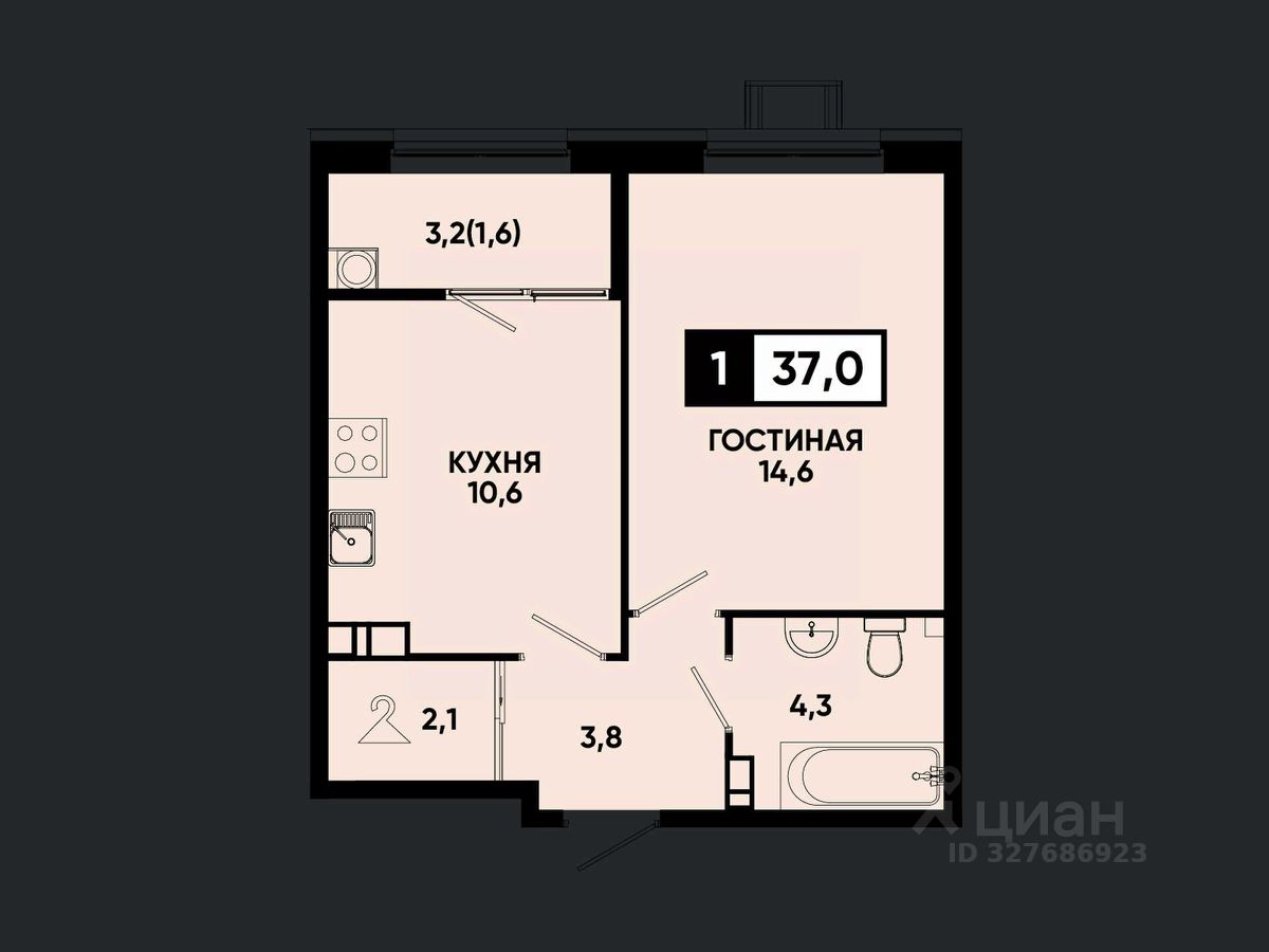 Общая площадь37 м²