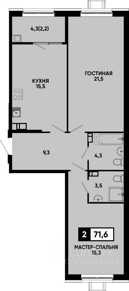 Общая площадь71,6 м²