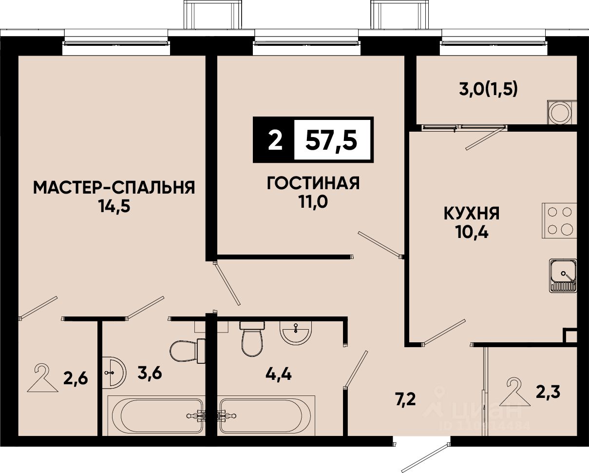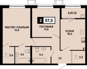 Общая площадь57,5 м²