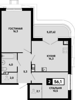 Общая площадь56,1 м²