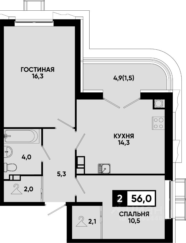 Площадь кухни14,3 м²