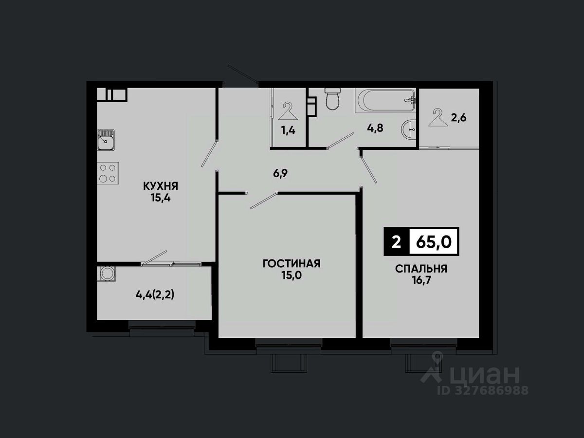 Общая площадь65 м²
