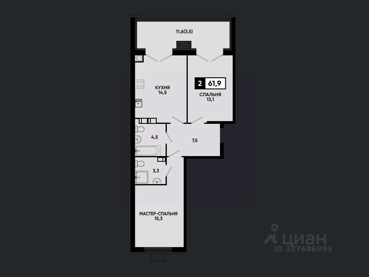 Общая площадь61,9 м²