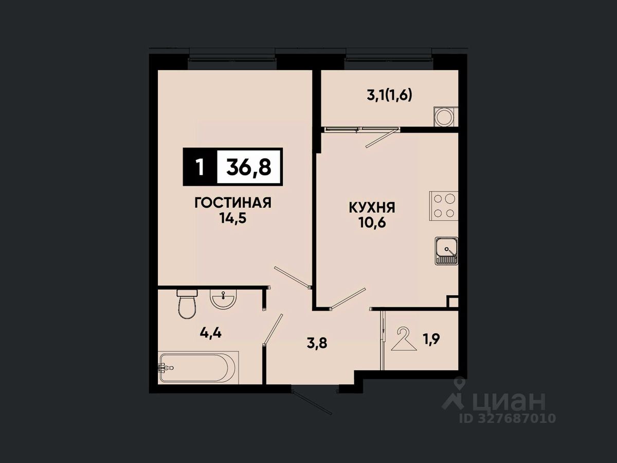 Общая площадь36,8 м²