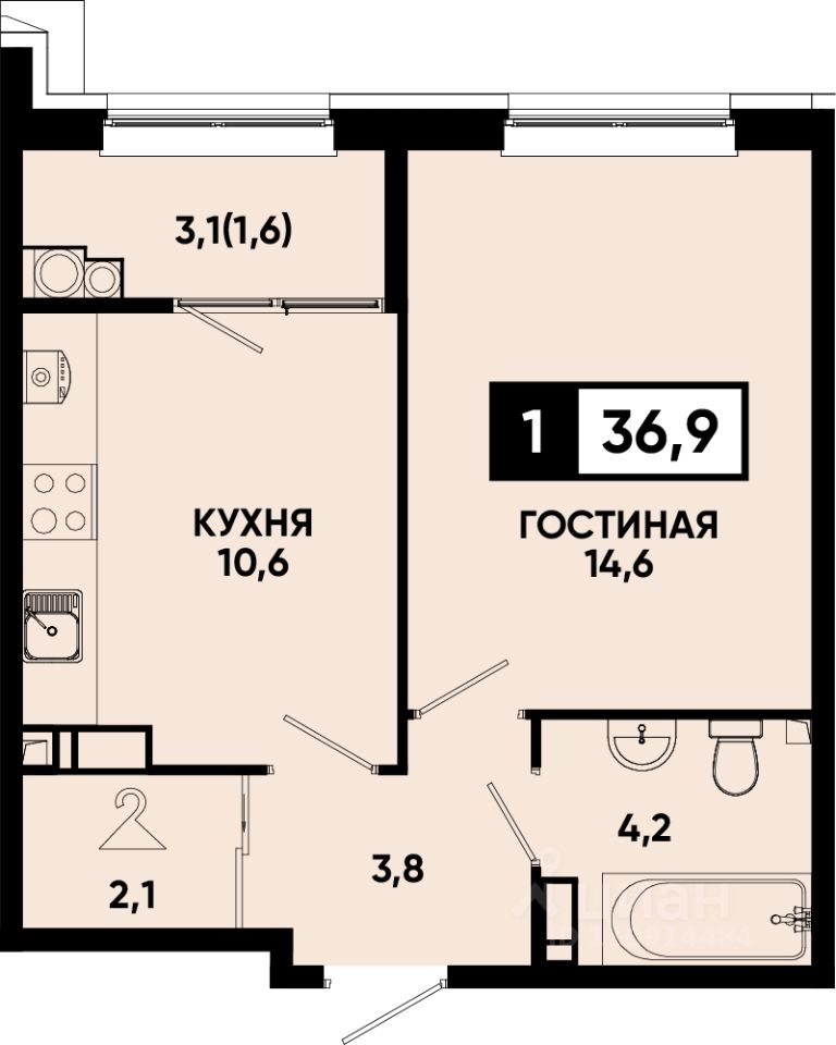 Общая площадь36,9 м²