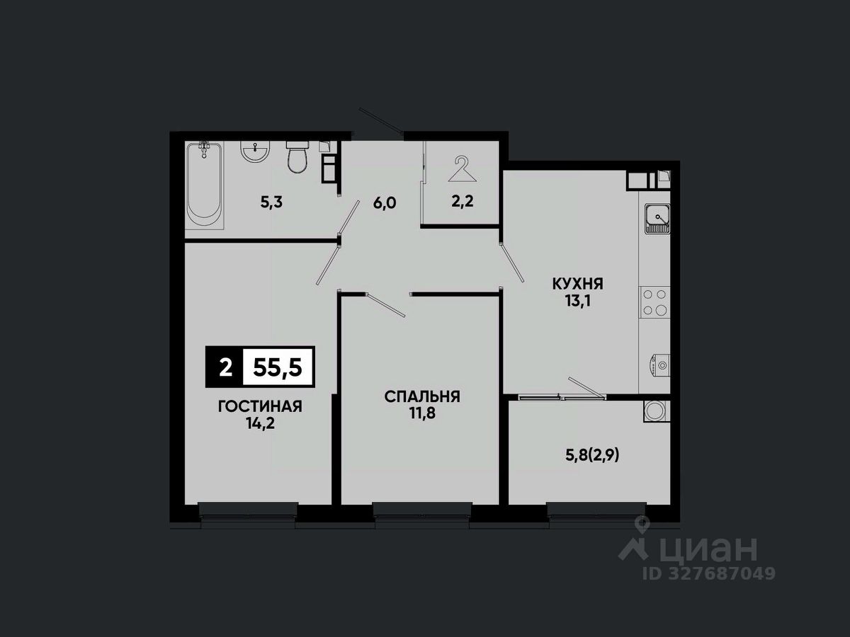 Общая площадь55,5 м²