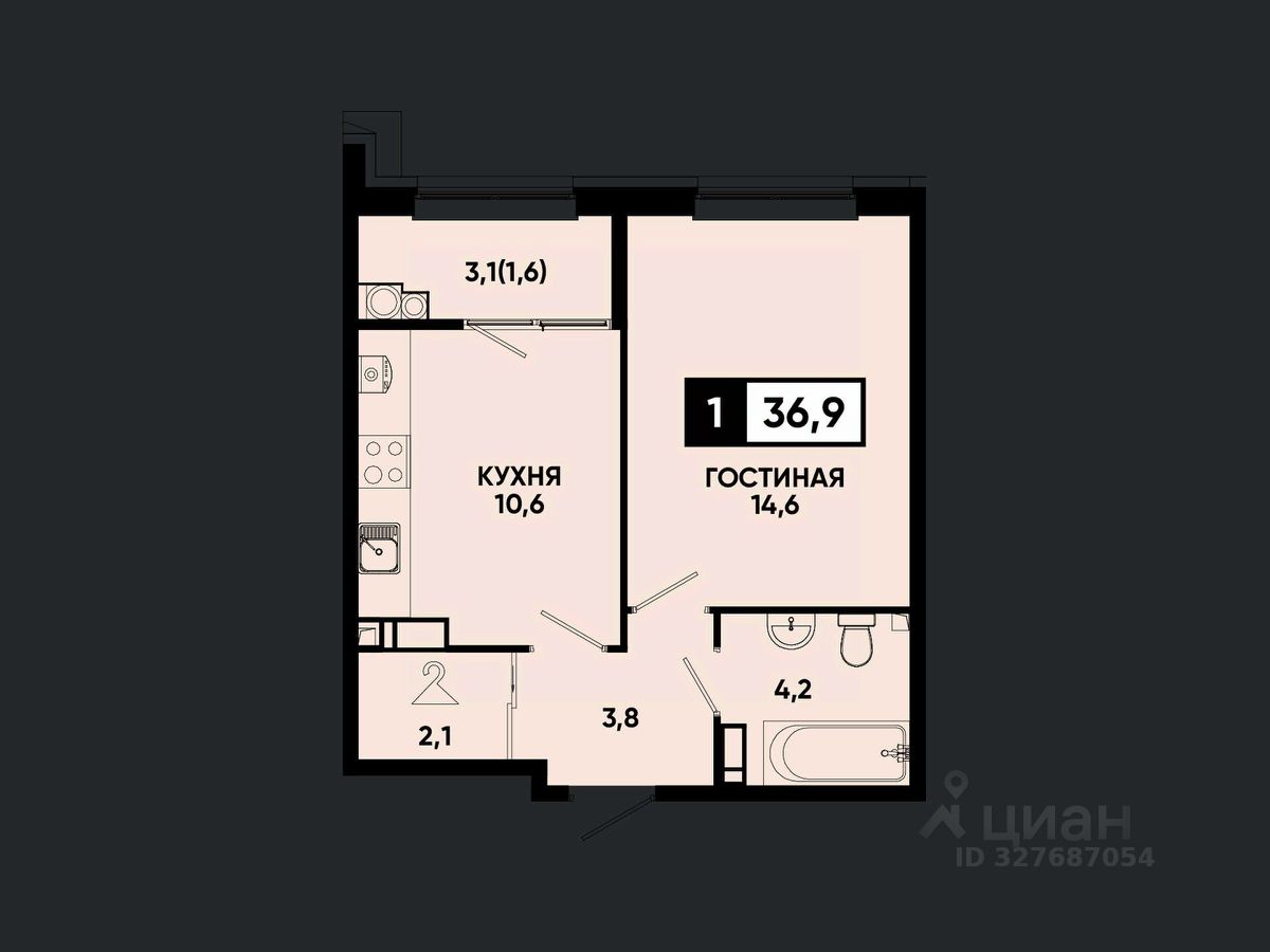 Общая площадь36,9 м²
